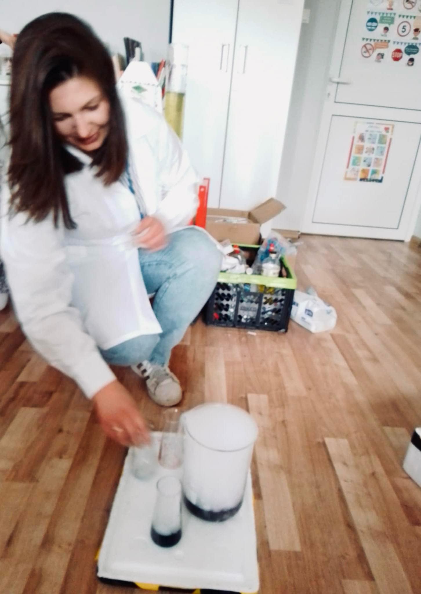 Wraz z nadejściem wiosny dr Karolina Wojtulewicz, oraz mgr Urszula Wolska-Świętlicka, rozbudziły ciekawość świata u zaradnych 5-latków z Szkoły Podstawowej nr 58 im. Tadeusza Gajcego. Młodzi naukowcy samodzielnie przeprowadzali eksperymenty dotyczące wpływu różnych substancji na sok z czerwonej kapusty, uczyli się, jak przeprowadzać hodowle redukcyjne w szalkach Petriego, a na przykładzie jajek obserwowali, dlaczego ważne jest mycie zębów po kwaśnych posiłkach. Na koniec wspólnie wykonali magiczną lampę lawową i obserwowali odparowywanie suchego lodu.